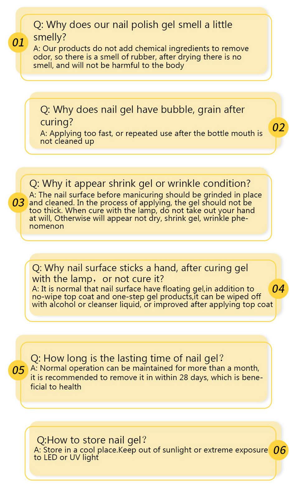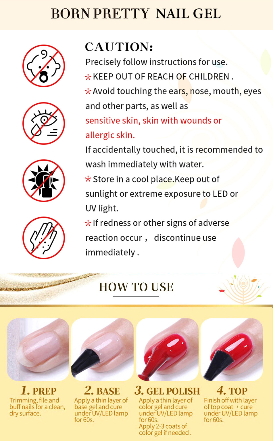 | Nail Gel Type | Base Coat / Top Coat / Matte Top Coat |