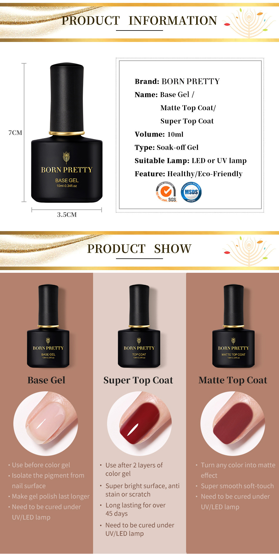 Born Pretty 10Ml Uv Nail Gel Nail Art Base Coat + Top Coat + Matt Top Coat Gel Polish 3Pcs Set Need Uv Lamp To Cure Uv Nail Polish